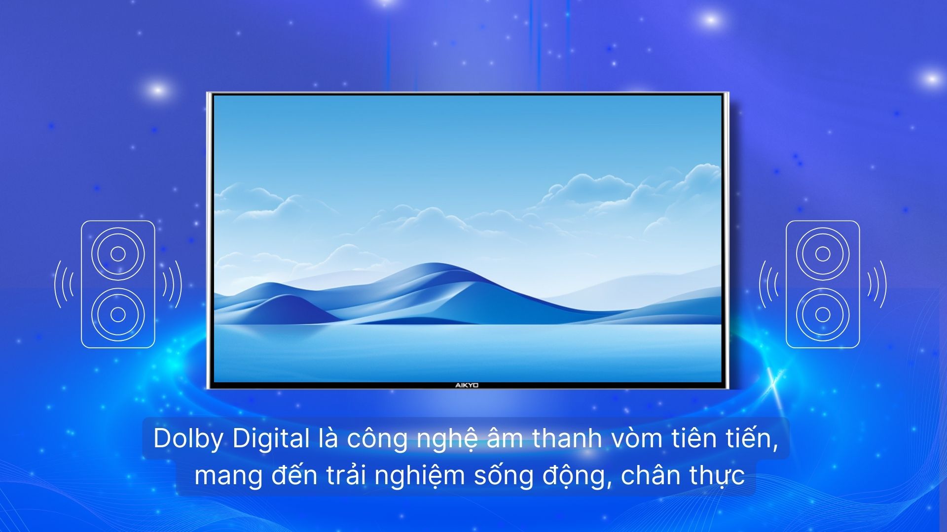 Với công nghệ xử lý hình ảnh tiên tiến, tivi Aikyo mang lại độ tương phản cao, dải màu rộng, giúp chữ viết, hình ảnh, biểu đồ hiển thị rõ ràng và dễ quan sát từ nhiều góc nhìn.