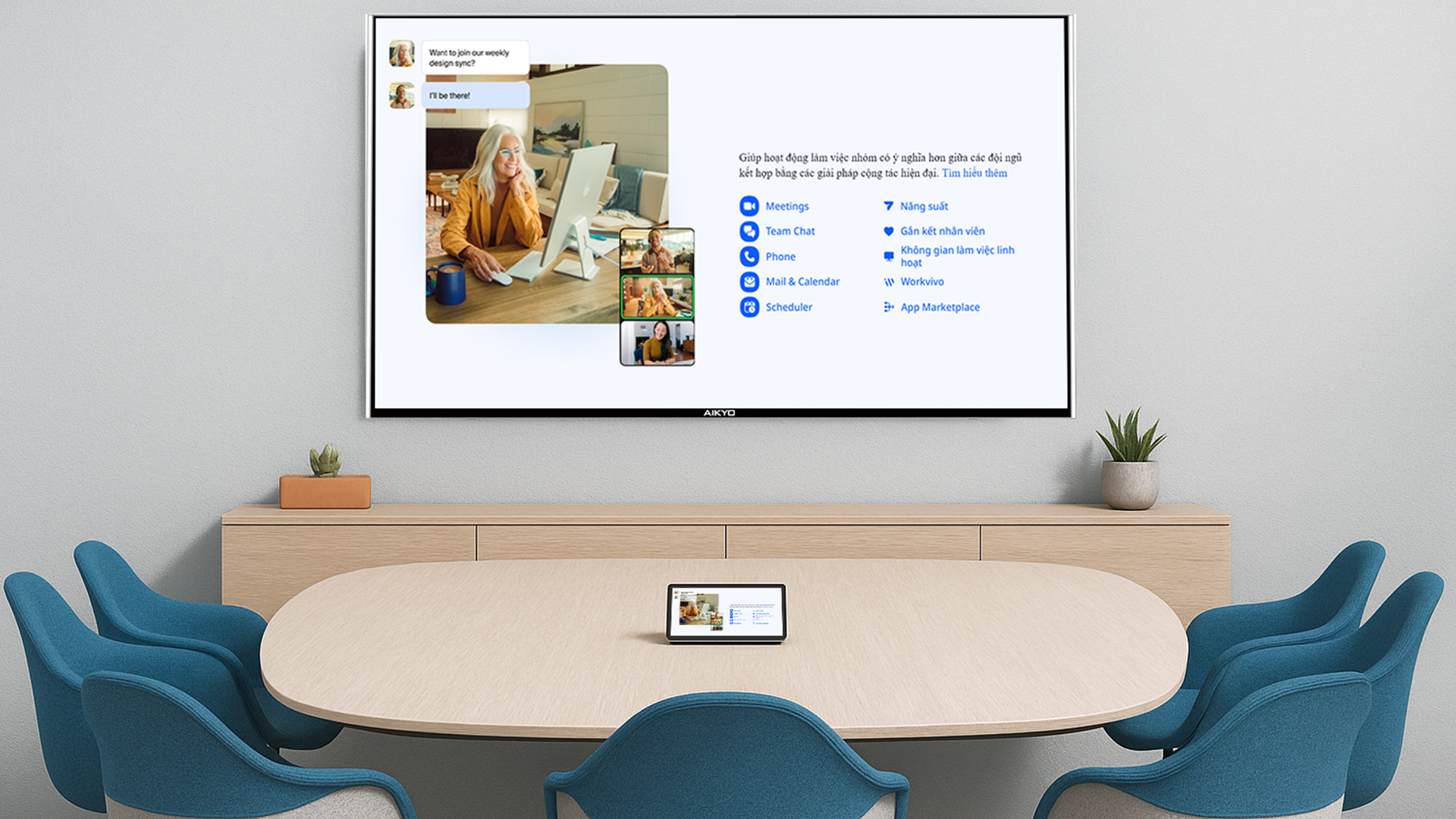 Tivi Aikyo chạy trên hệ điều hành thân thiện, dễ sử dụng, cho phép truy cập nhanh các ứng dụng hỗ trợ giảng dạy và làm việc trực tuyến như: